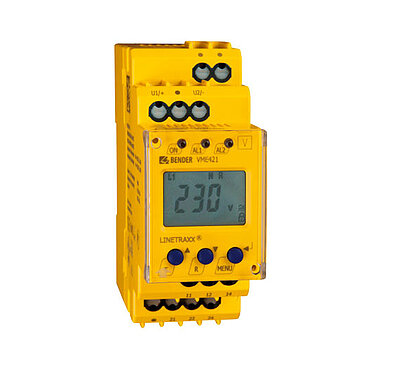 Multifunctional monitoring relay for undervoltage, overvoltage and frequency in AC/DC systems without separate supply voltage